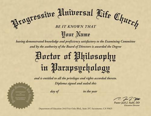 Doctor of Philosophy in Parapsychology NOW 50% Off & Doctor of Philosophy in Metaphysics FREE!!